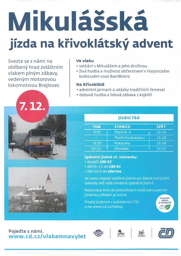 Na akci se můžete nechat dovézt Mikulášským vlakem z Plzně: