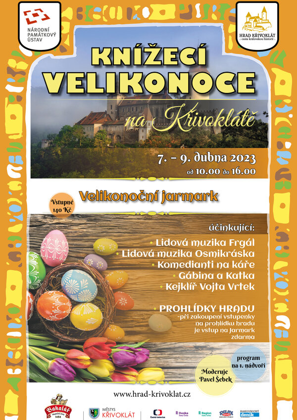 Během velikonočních svátků od 7. do 9. dubna otevře hrad Křivoklát své brány, aby uvítal své návštěvníky ve svátečním duchu. Velikonoční jarmark, program pro děti i dospělé a prohlídky hradních interiérů budou hlavními body celé akce. Pokud si zakoupíte jakoukoliv prohlídku hradu, program na nádvoří máte zdarma. Jestliže zavítáte především na pořádanou akci, vstupné činí 140 Kč na osobu.