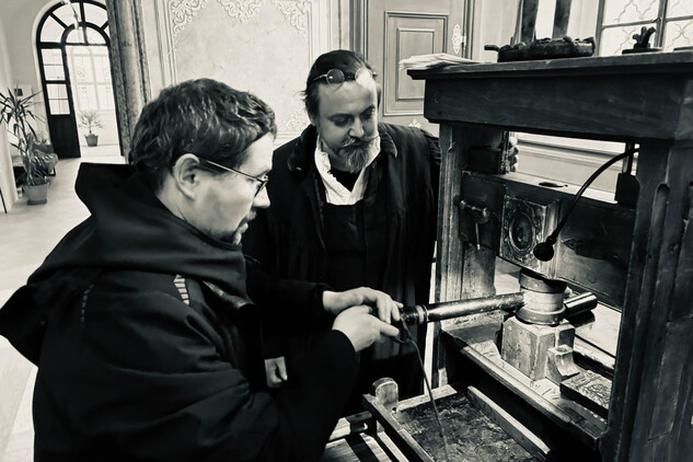 • 18:00 - 22:00: vnitřní nádvoří: Tisk na replice dřevěného lisu z 16. století
